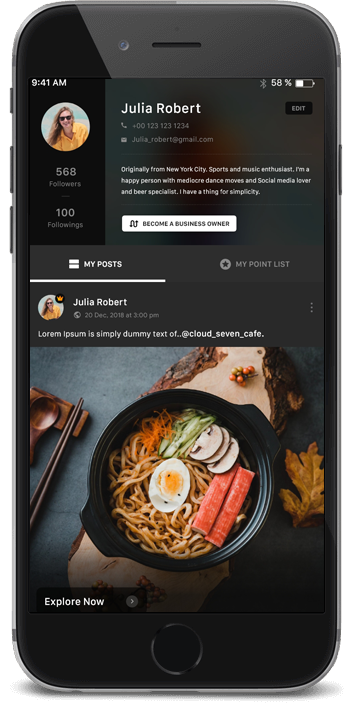Business owners get the chance to market their businesses by the app users at a nominal cost, charged when, and only when, a successful and effective marketing event has occurred.
